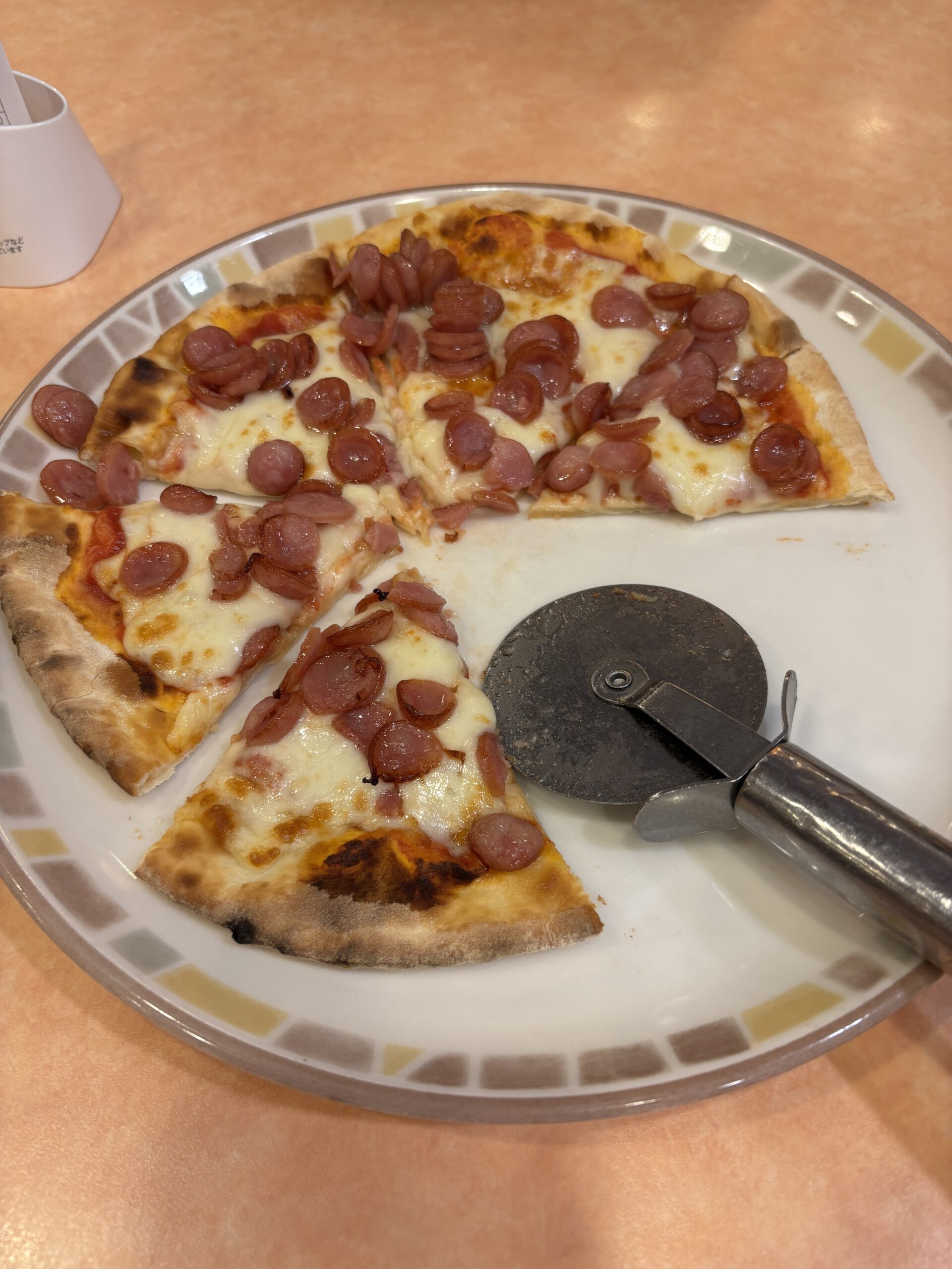 母が髪を切ってる間、サイゼリヤでピザくってましたが、、、